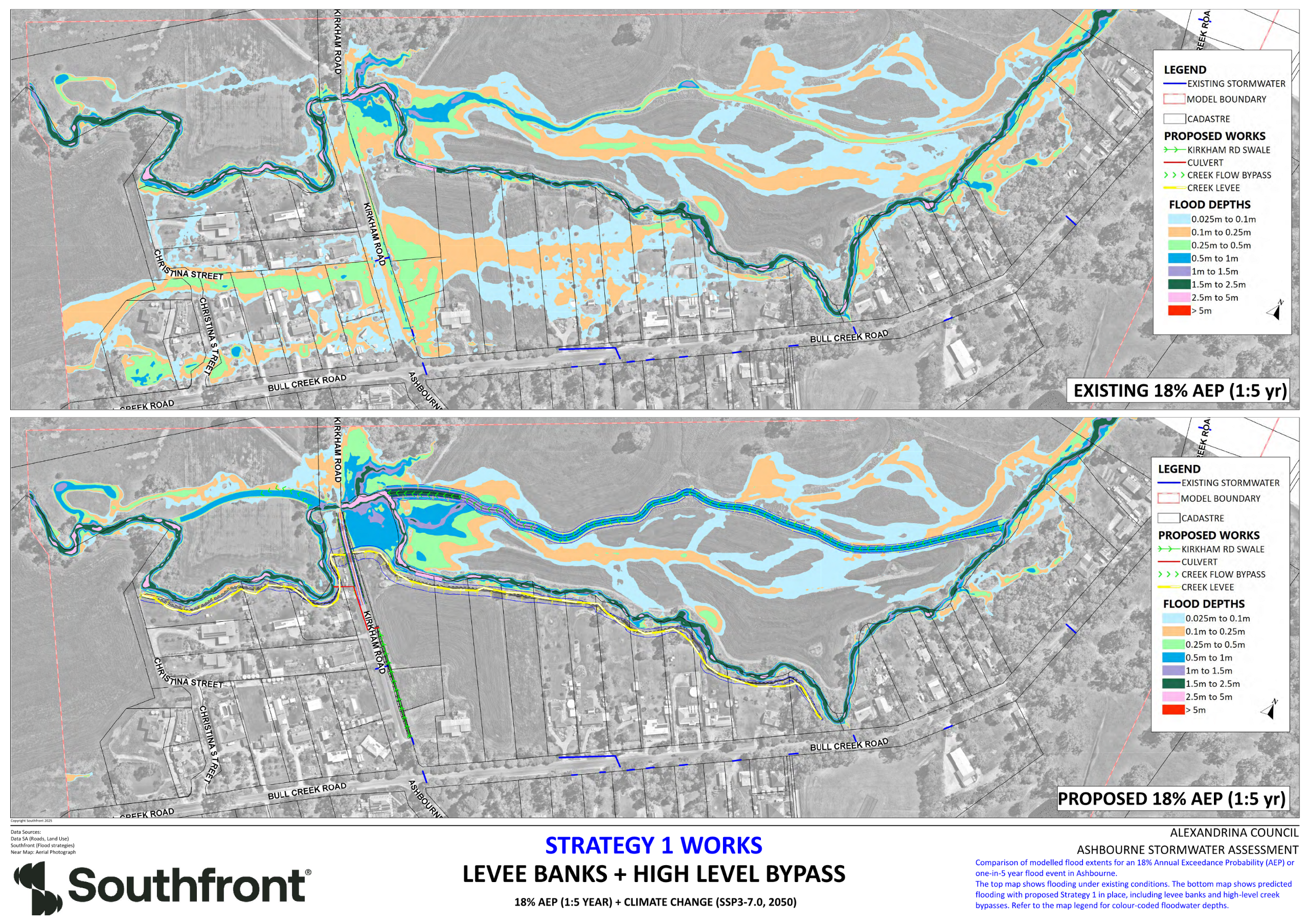 Since our last update, and after careful assessment, Council has selected Concept Design Option 2 as the most effective long-term solution for Ashbourne’s flood mitigation needs. Refer to Ashbourne Stormwater Mitigation Web Page for detailed drawings.