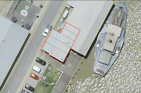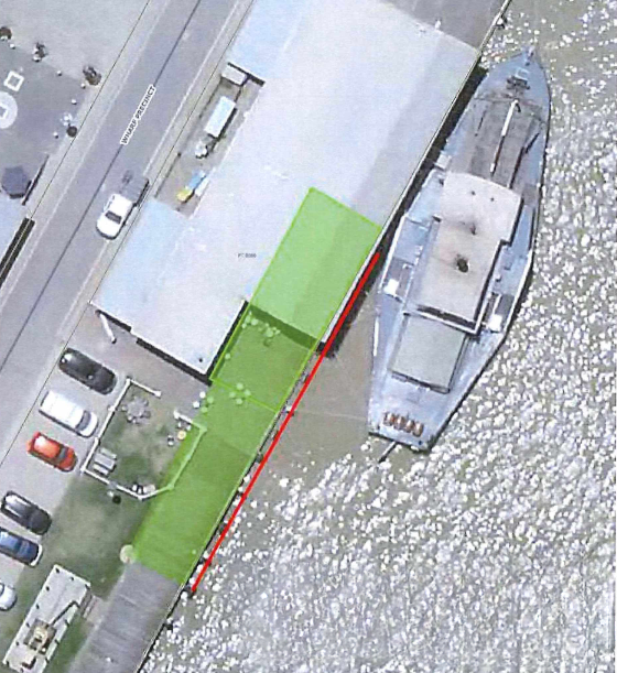 Red line indicates approximate 32 linear meters of posts exclusive mooring of Oscar W vessel